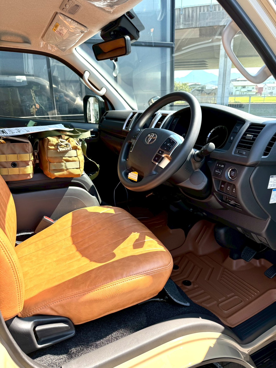 シートカバーはブラウン系で統一。